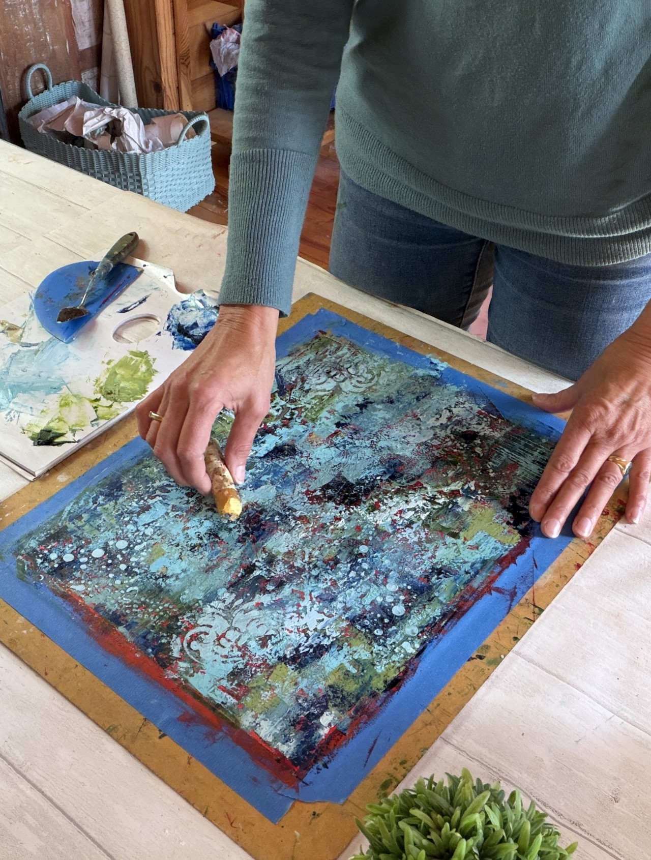 Seeking a sense of community, I have created the Cold Wax Collective, a monthly membership where fellow artists can come together to create, share ideas, and grow.